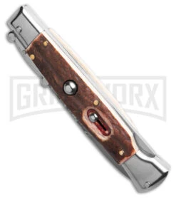 Automatic Italian Style Swinguard 9″ Stag – Damascus Bayonet Blade