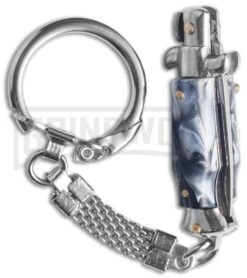 Italian Stiletto Gray Automatic Knife Yellow Keychain – Flat Grind
