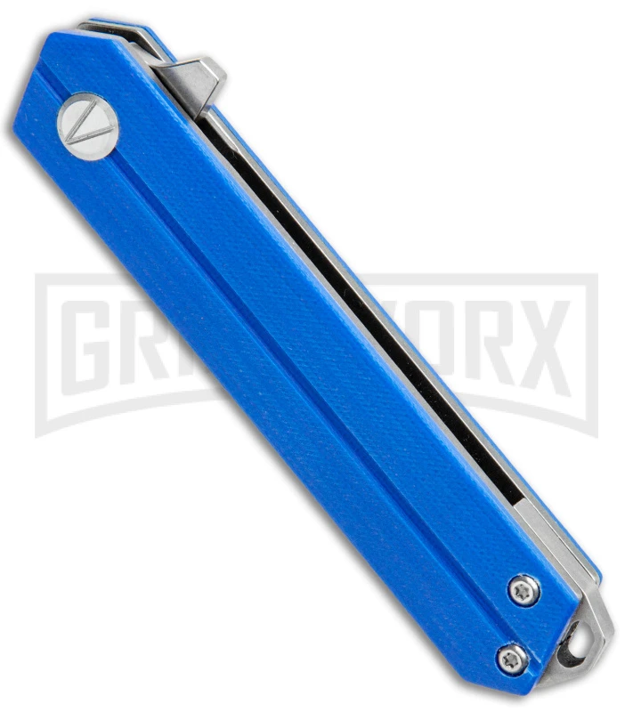 The Linear is a small flipper knife that’s eager to tackle your EDC needs. It features a blue G-10 handle and a drop point D2 steel blade with a stonewash finish.