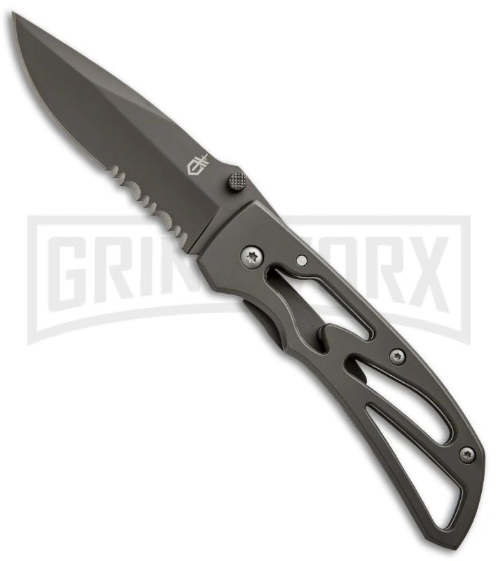 A more aggressive take on the Paraframe, the Powerframe has a less-rounded, more-angled handle and a serrated blade. Its partially serrated blade uses the same stainless steel, frame-lock body design. Lightweight and easy to open, the entire knife has a smooth titanium coating, making it more corrosion resistant and less reflective. Its a tough and technically sound daily-use folder.