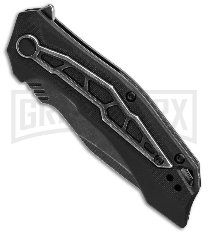 The Kershaw Flatbed is a tough folding knife with a blackout colorway. The Tanto blade is made from stainless steel and sports a BlackWash finish that provides a rugged look while hiding any scuffs and scrapes your knife gets. The one-handed opening action is made possible by a spring assist and a flipper opener.