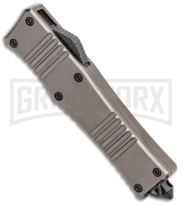 This Cali-Legal model from No Limit Knives features a gray handle and two-tone, clip point blade.
