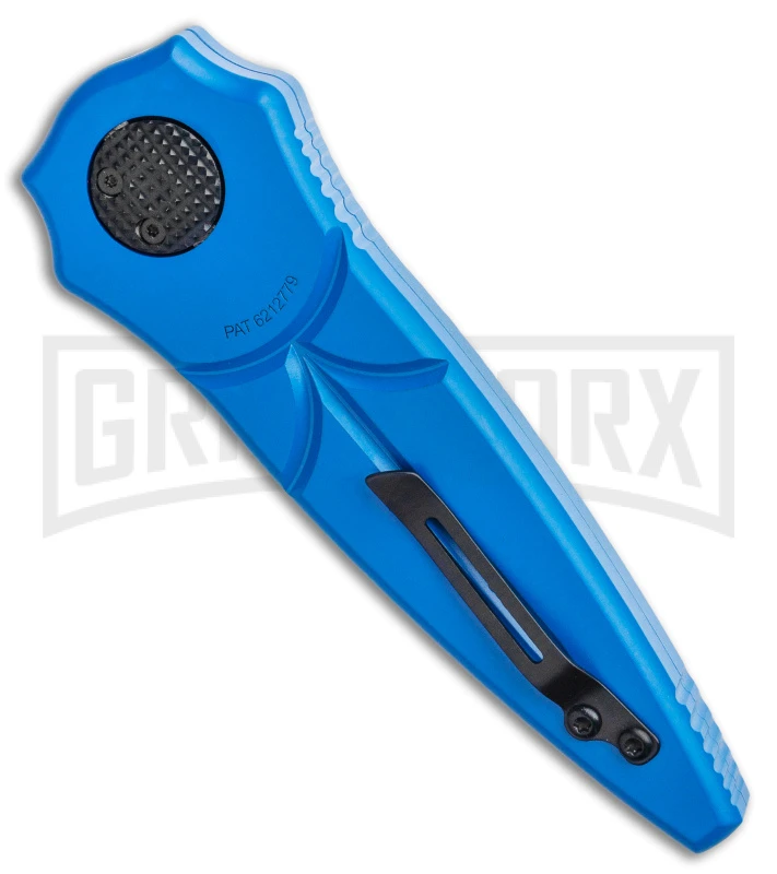 This Paragon Warlock model has a blue aluminum handle and a black finished dagger blade. The Warlock has a unique gravity knife style opening mechanism that provides rapid, springless blade deployment. Item includes a pocket clip for tip-up carry. The front loaded firing button opens and unlocks the blade with a flick of the wrist. No knife collection is complete without a Paragon Warlock, get yours today!