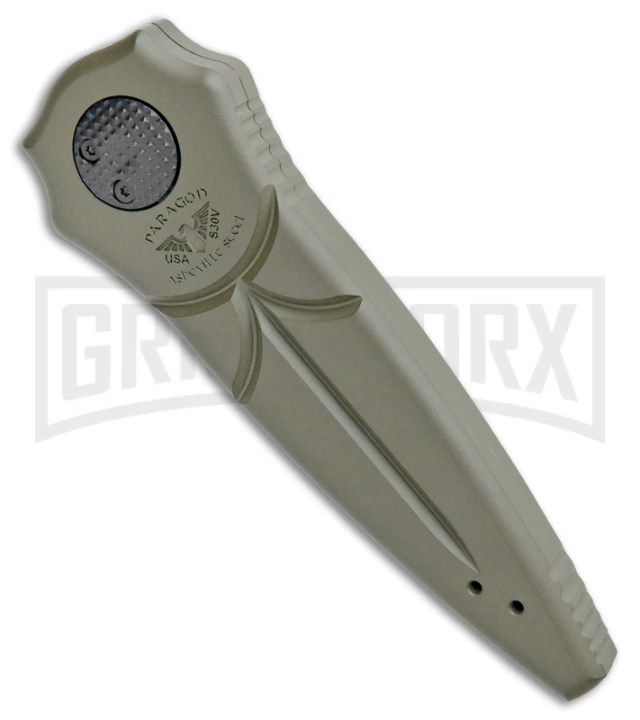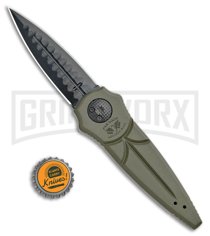 This Paragon Warlock model has an OD green aluminum handle and a black finished dagger blade. The Warlock has a unique gravity knife style opening mechanism that provides rapid, springless blade deployment. Item includes a pocket clip for tip-up carry. The front loaded firing button opens and unlocks the blade with a flick of the wrist. No knife collection is complete without a Paragon Warlock, get yours today!