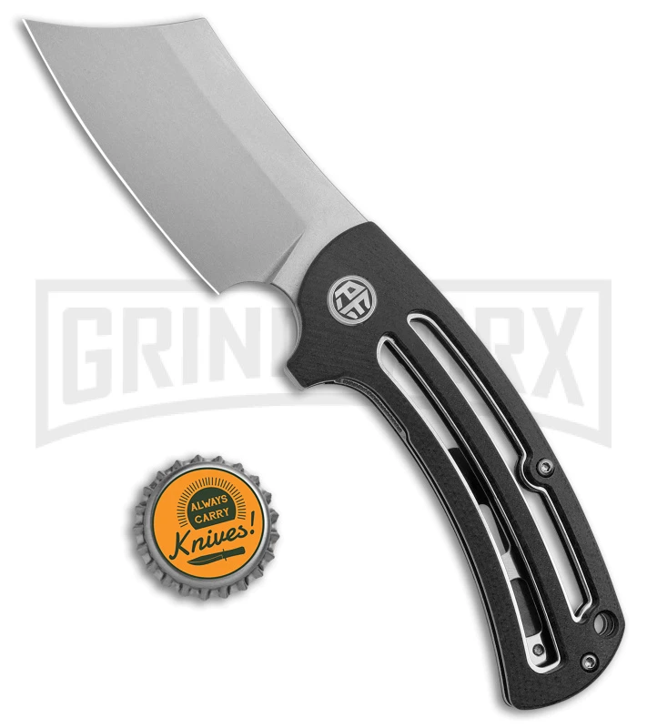 - Black skeletonized G-10 handle for a great grip.