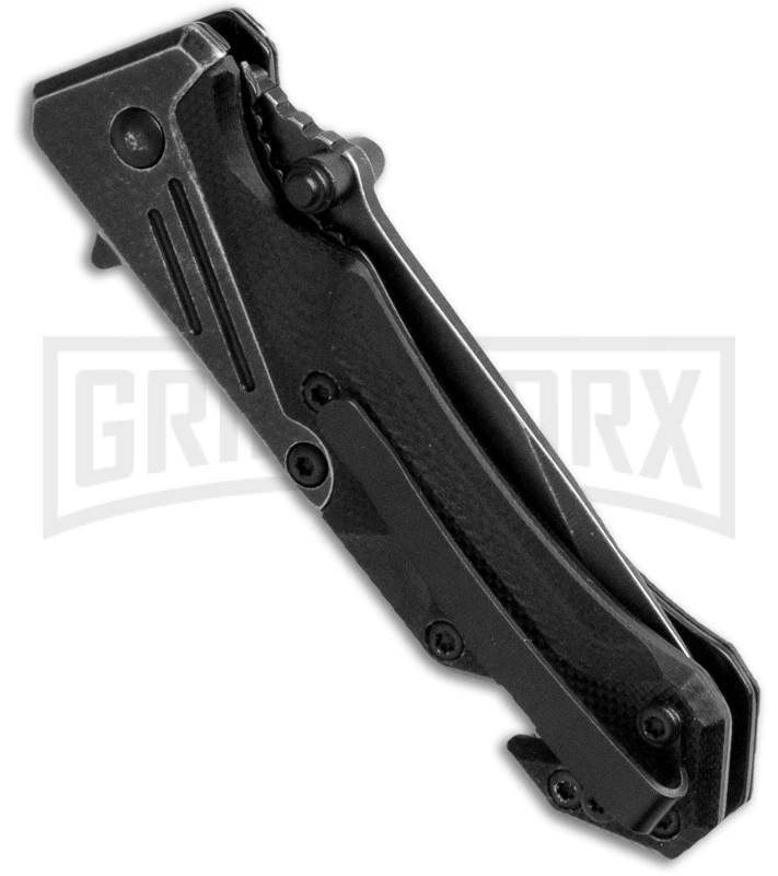 Don’t let the smaller size of this knife fool you. The Smith & Wesson Extreme Ops tanto folding knife is ready to take on the same tasks as the bigger knives without taking up so much space. Made of 7Cr17MoV high carbon stainless steel, this blade is built to be durable. The tanto blade gives you the best angle for punching and slicing through tough materials. The black stonewash finish means it’ll look good no matter how much you subject it to. The handle features finger grooves for security and comfort, G-10 handle scales that improve grip, and a built-in strap cutter that can also tackle other fibrous materials. On the back of the handle you’ll find a tip-up pocket clip so you can easily carry this awesome tool with you.