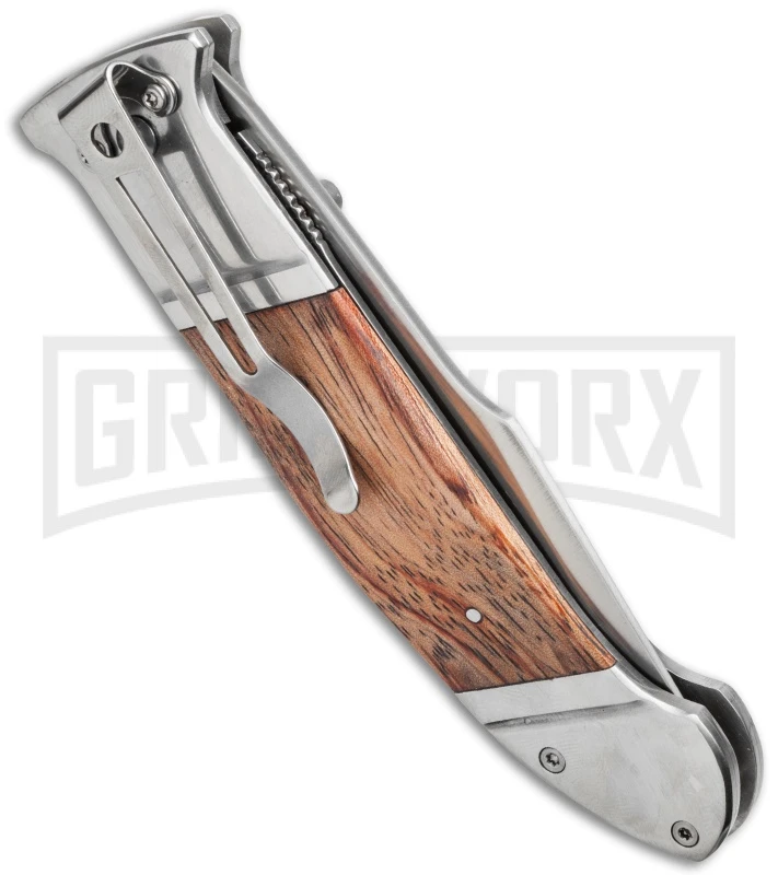 Introducing the beautiful Fielder XL. The contrast of the vertical grain wood against the high luster bolsters creates a very appealing visual tension. This is a knife that is comfortable as a daily carry or out in the wilds. Using a proven liner lock system provides reliability as well as an ambidextrous opening of the Fielder XLs capable blade. The Fielder XL will catch your eye, but not your pocket book!